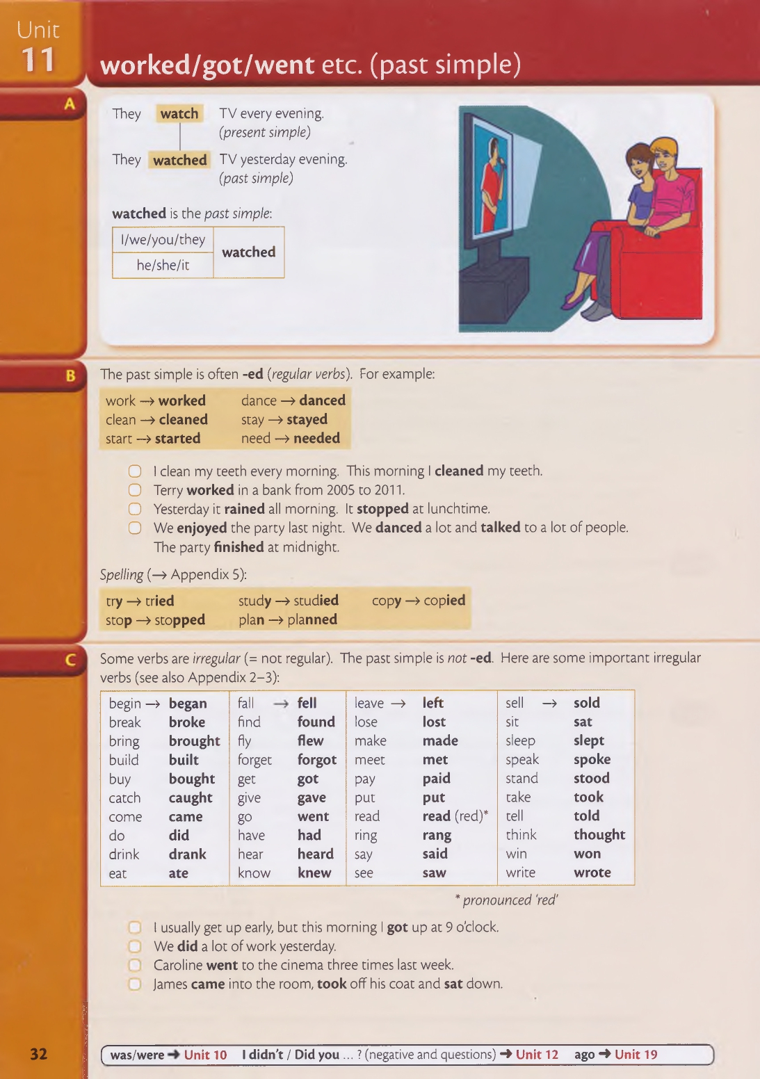 11 worked/got/went etc (past simple)
