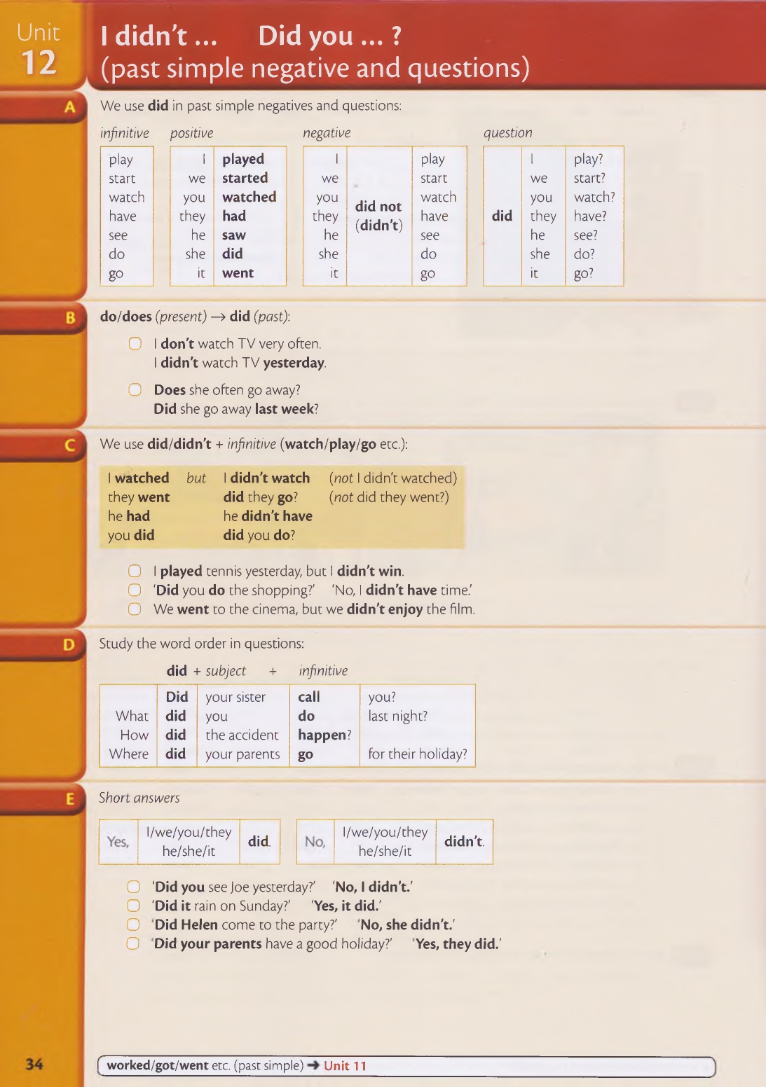 12 I didn’t… Did y o u …? (past simple negative and questions)