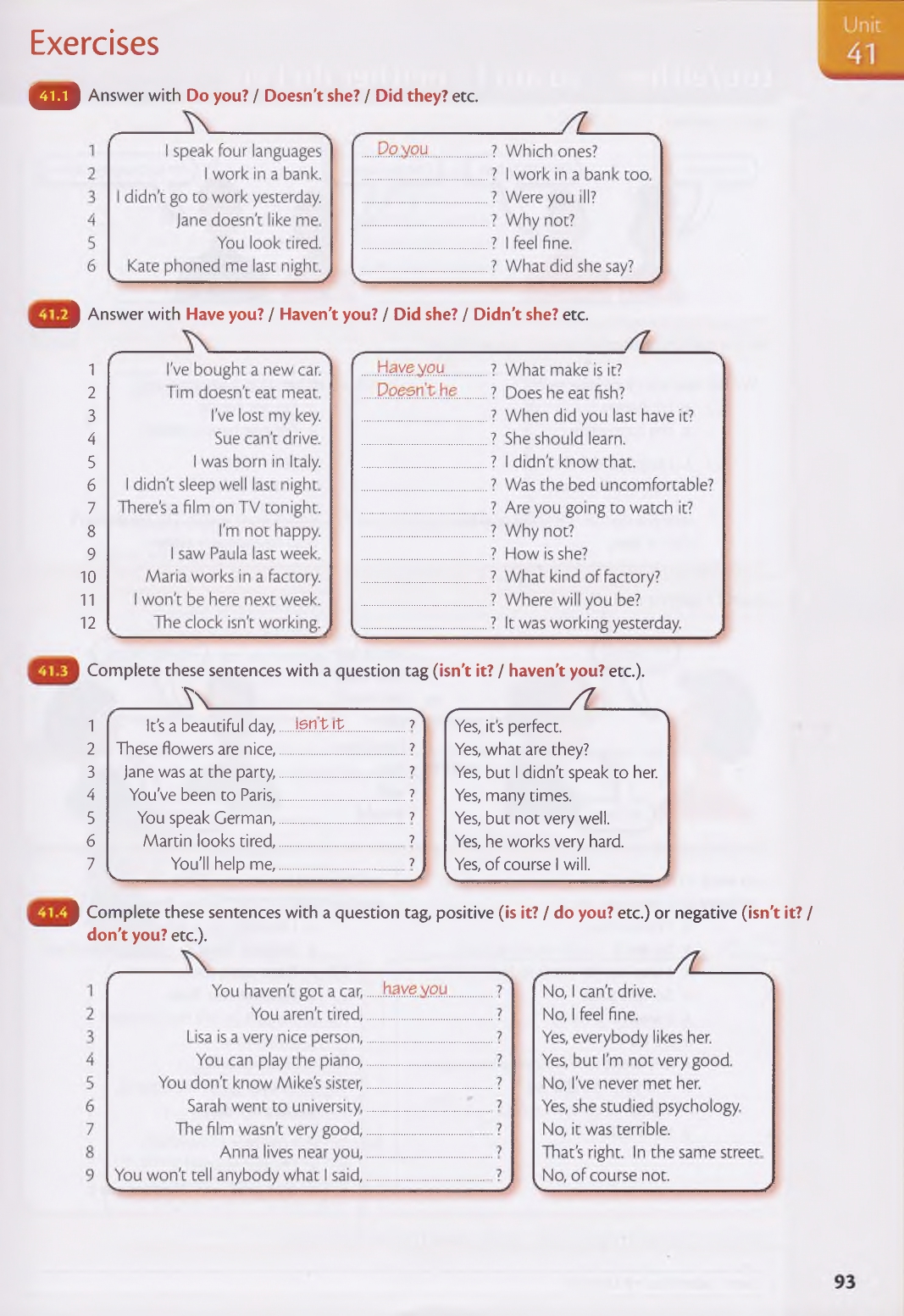 41 Have you? Are you? Don’t you? etc