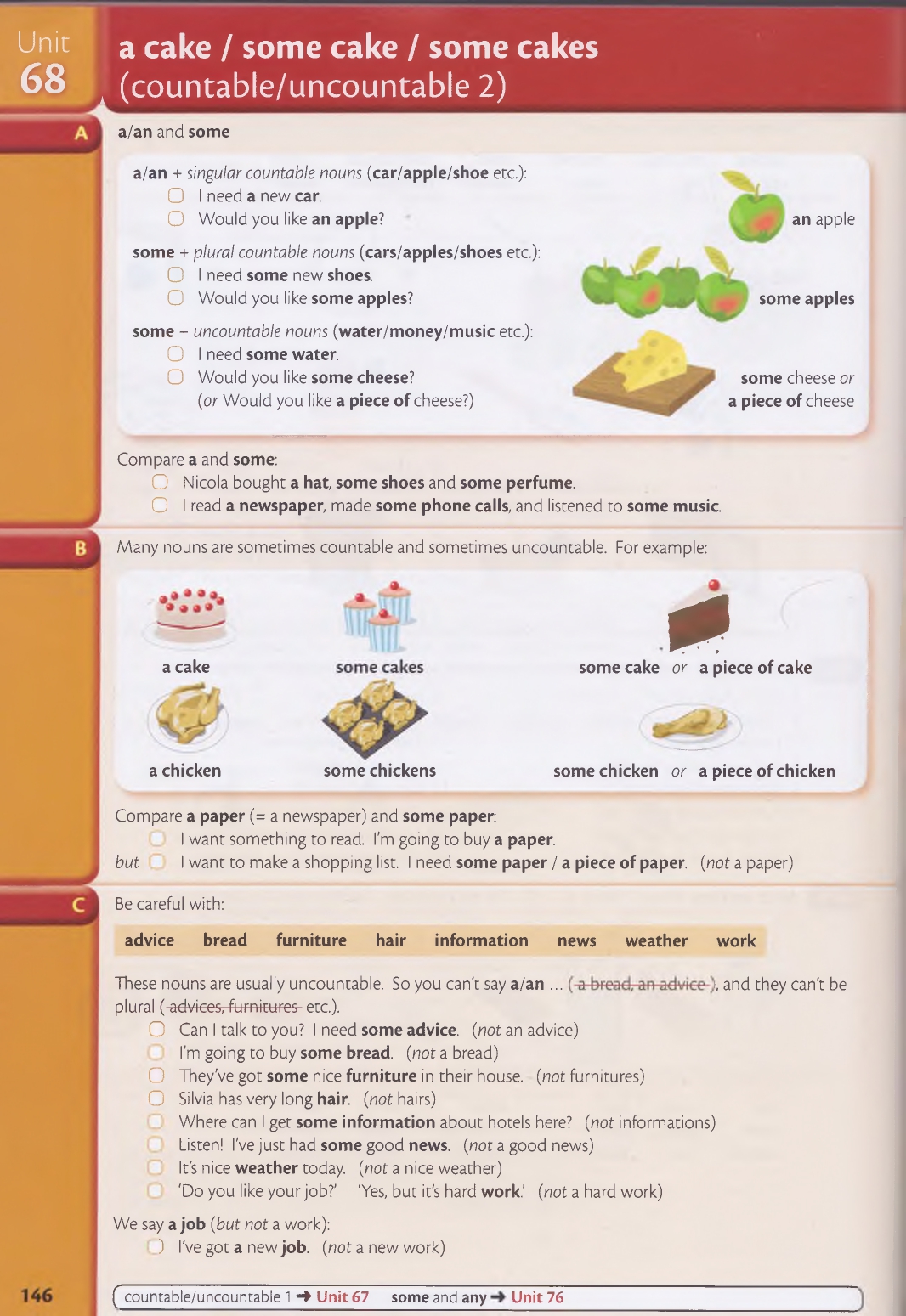 68 a cake / some cake / some cakes (countable/uncountable 2)