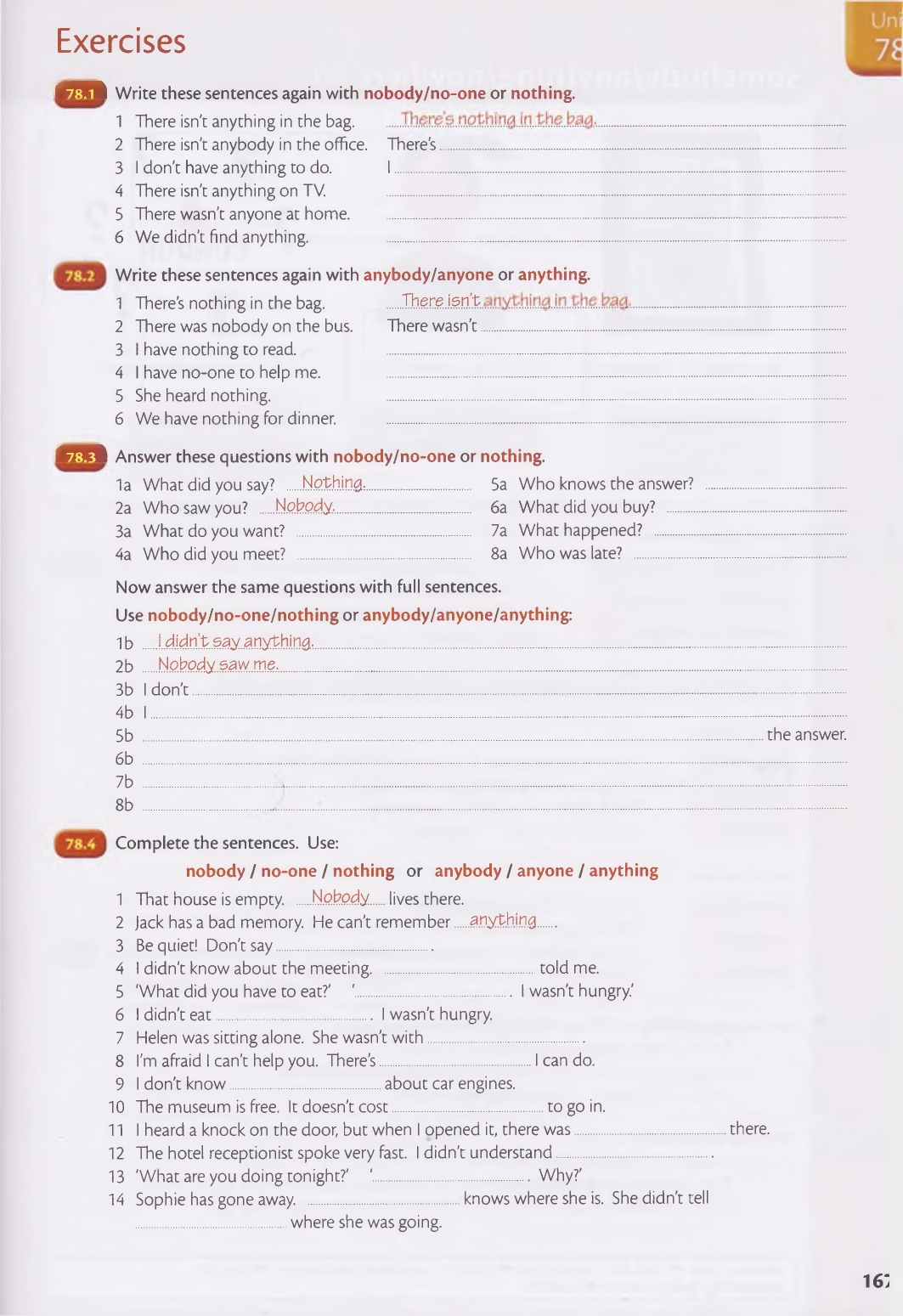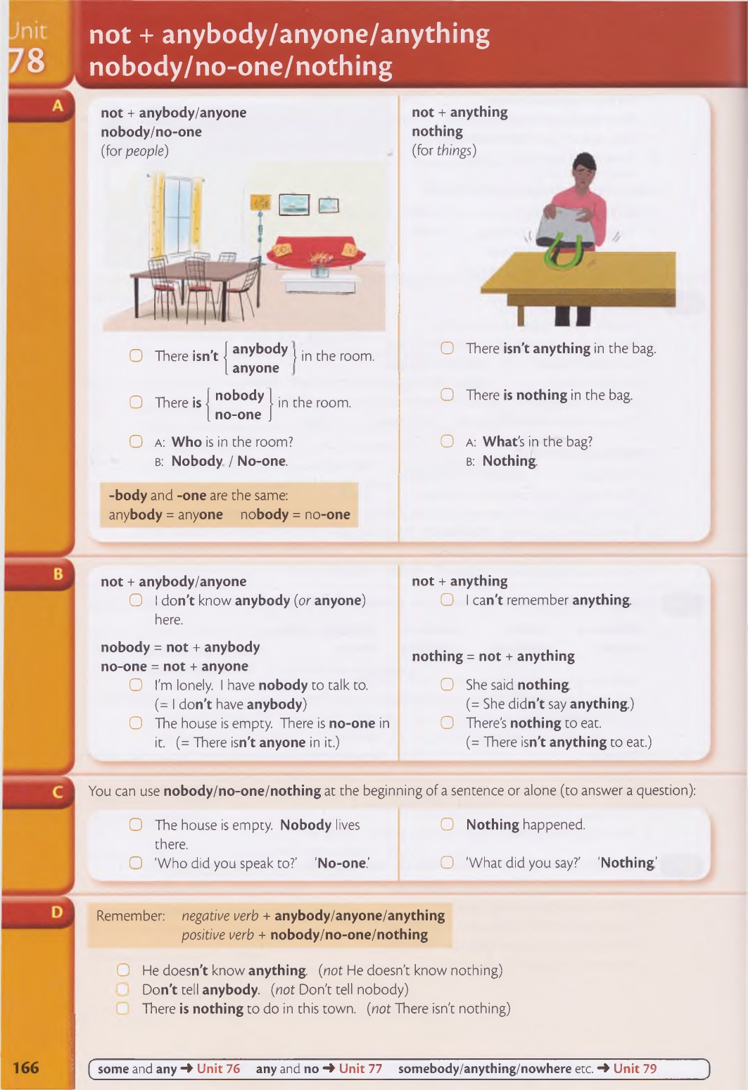78 not + anybody/anyone/anything nobody/no-one/nothing