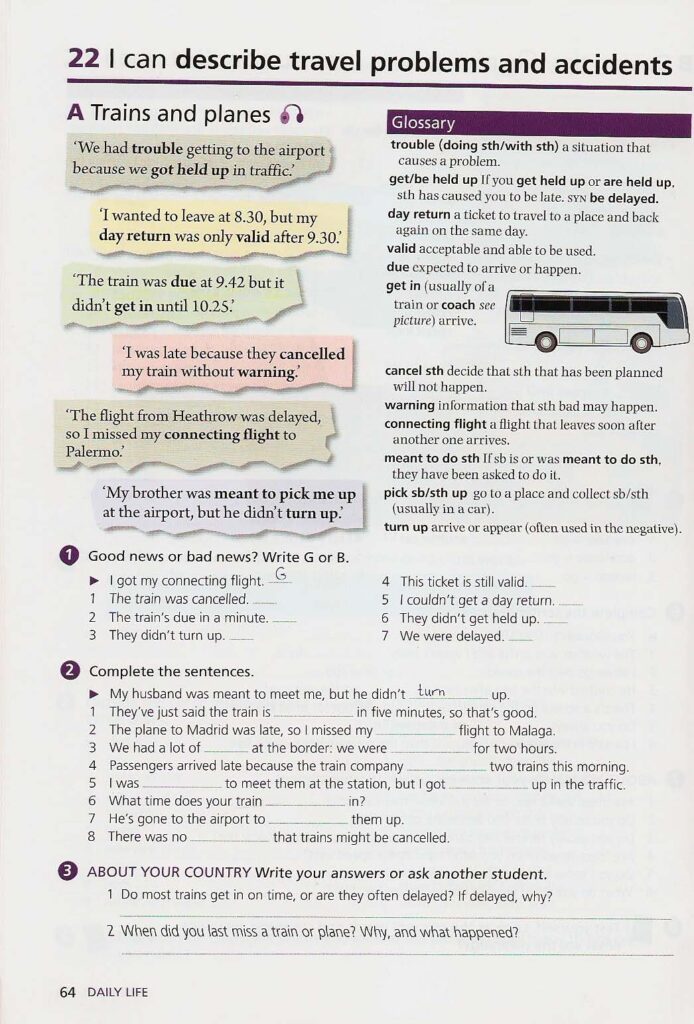 Unit 22: I can describe travel problems and accidents