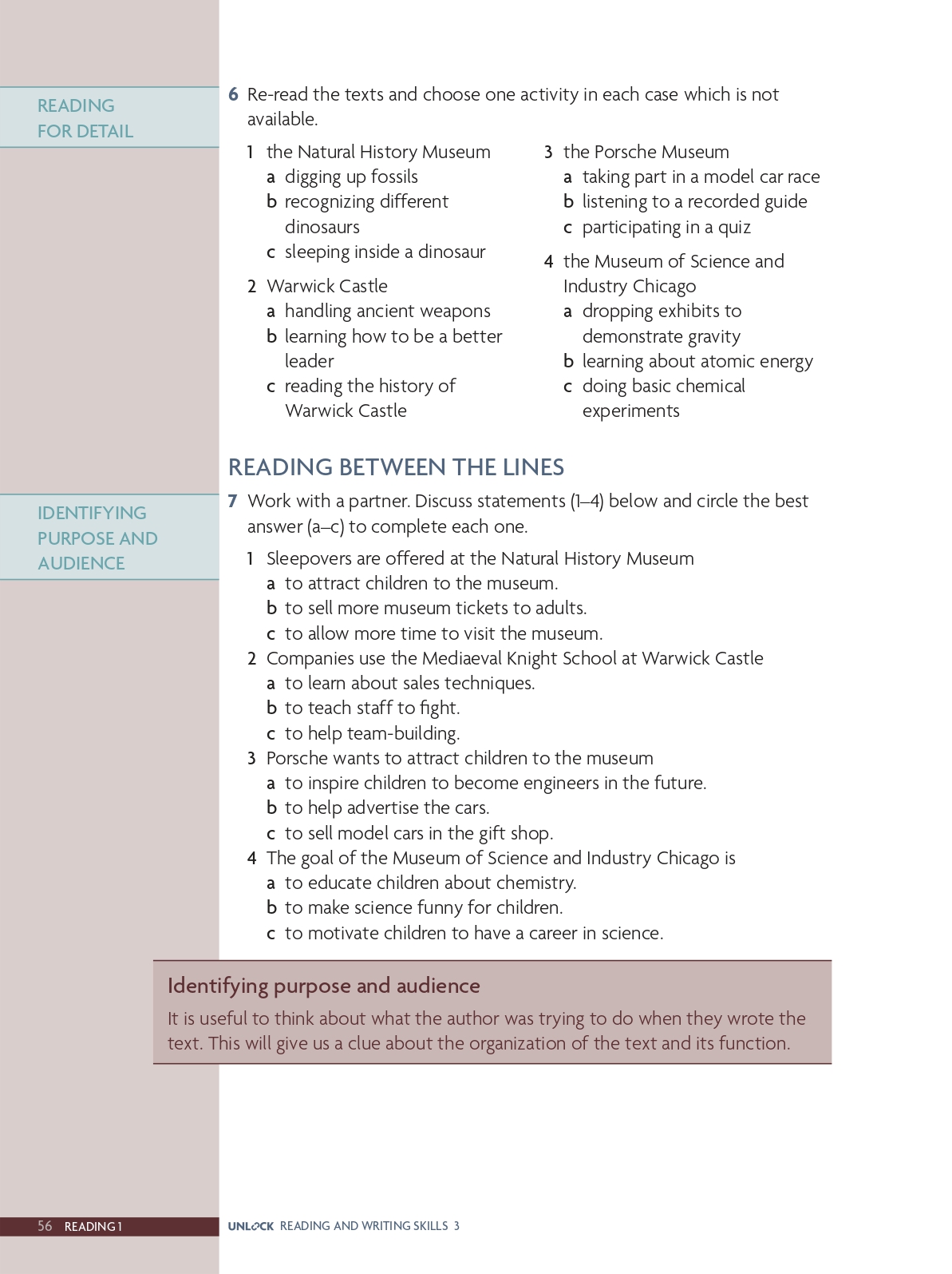 Reading skills: Identify purpose and audience of a text