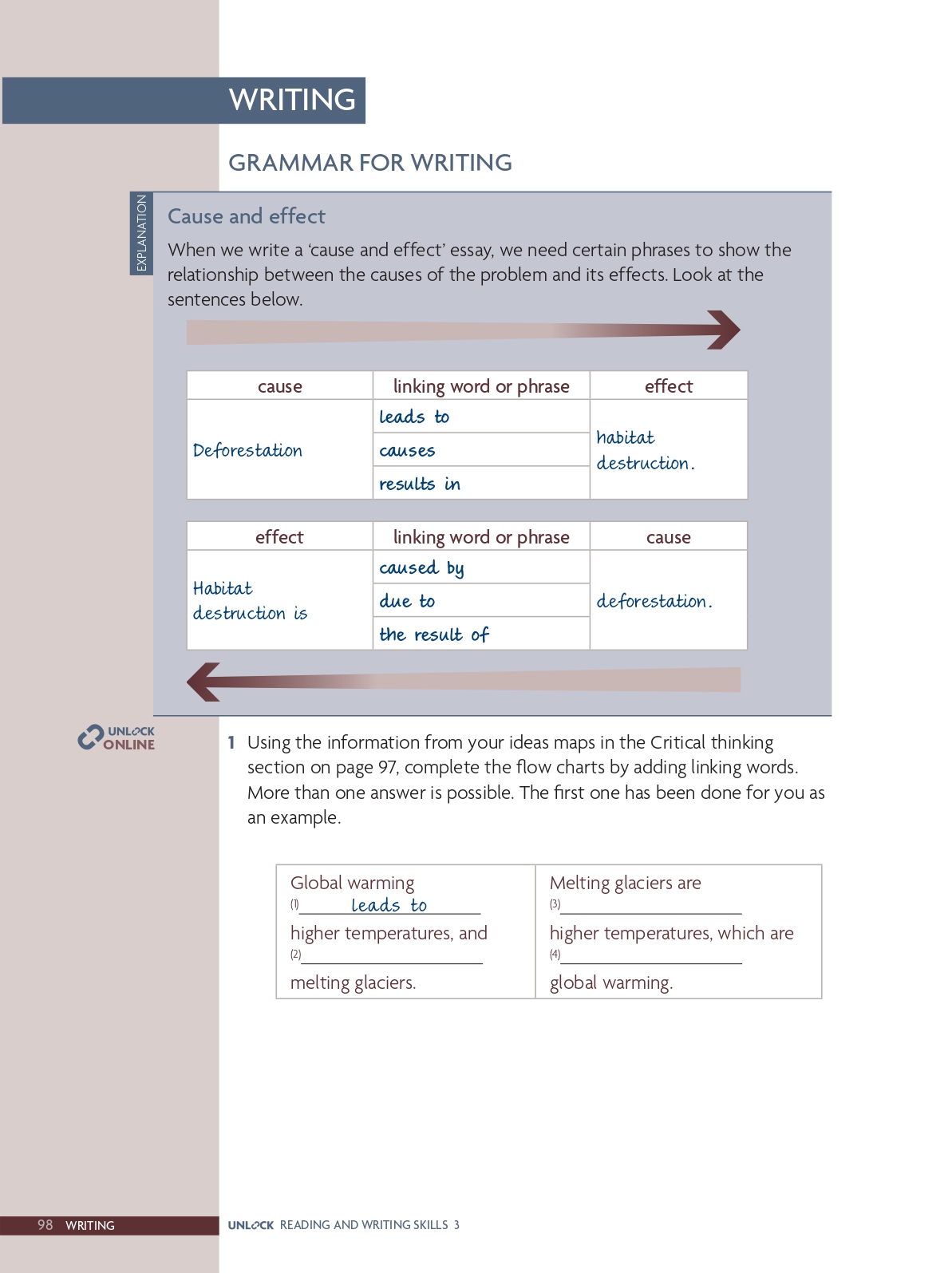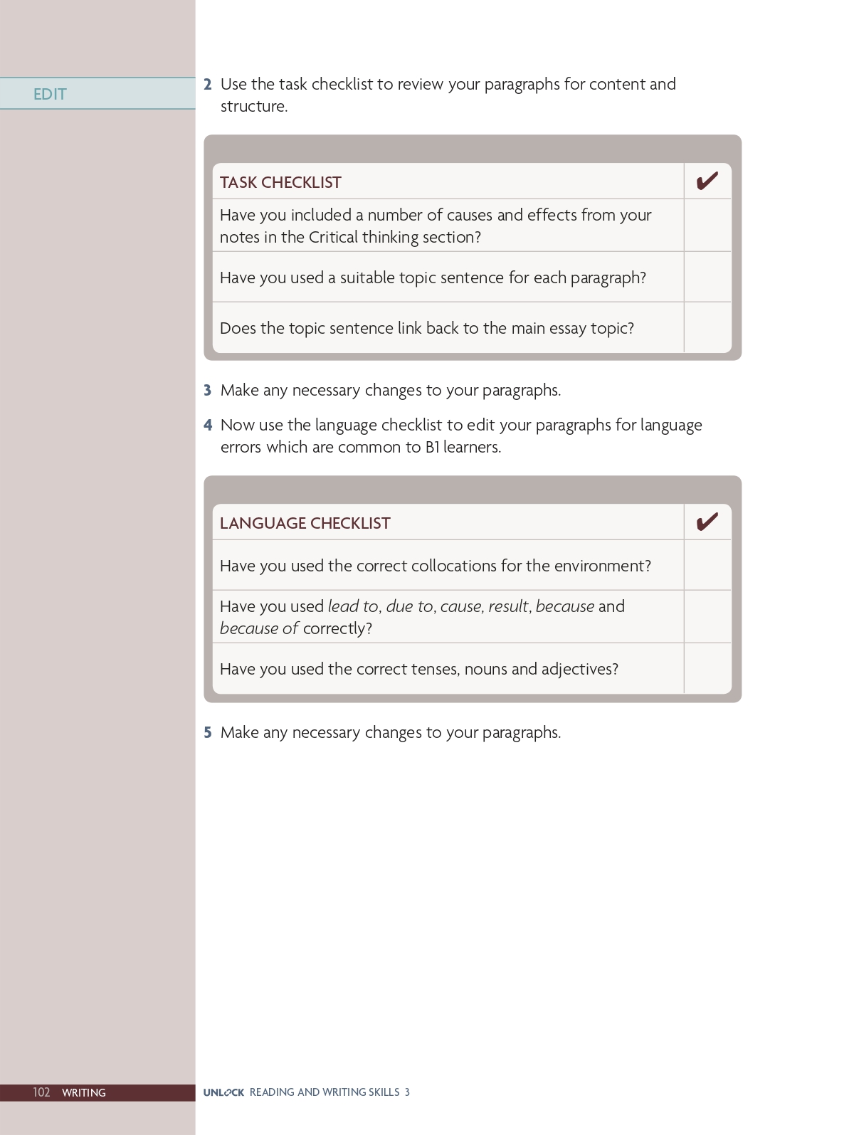 Writing task: Write two cause–effect paragraphs