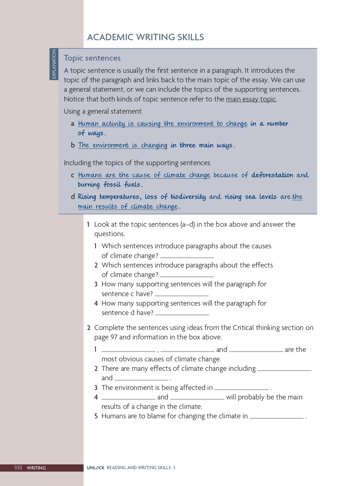 Academic writing skills: Write a topic sentence