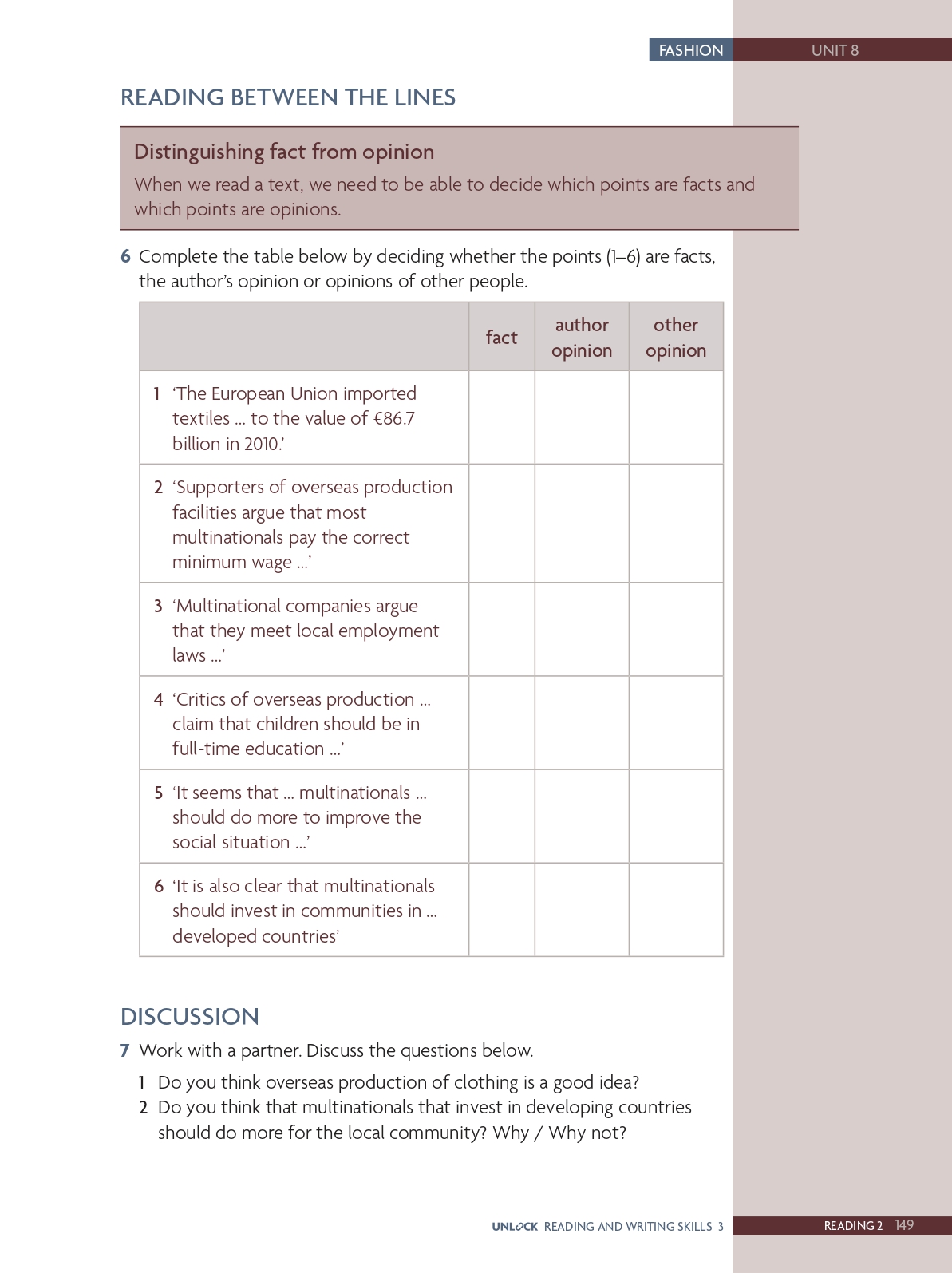 Reading skills: Distinguish fact from opinion