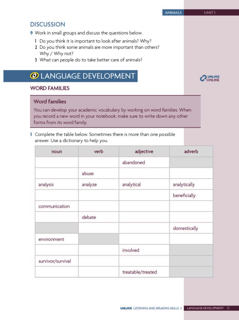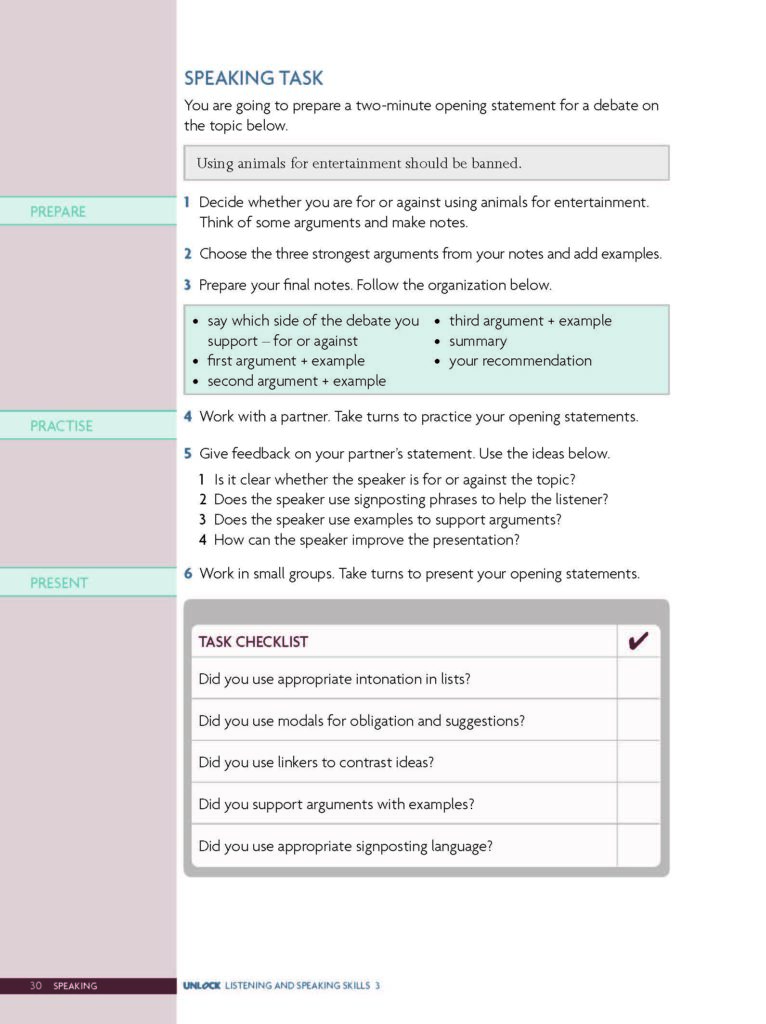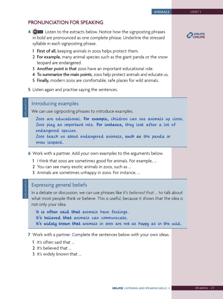 Speaking skills: Use signposting language; introduce examples; express general beliefs