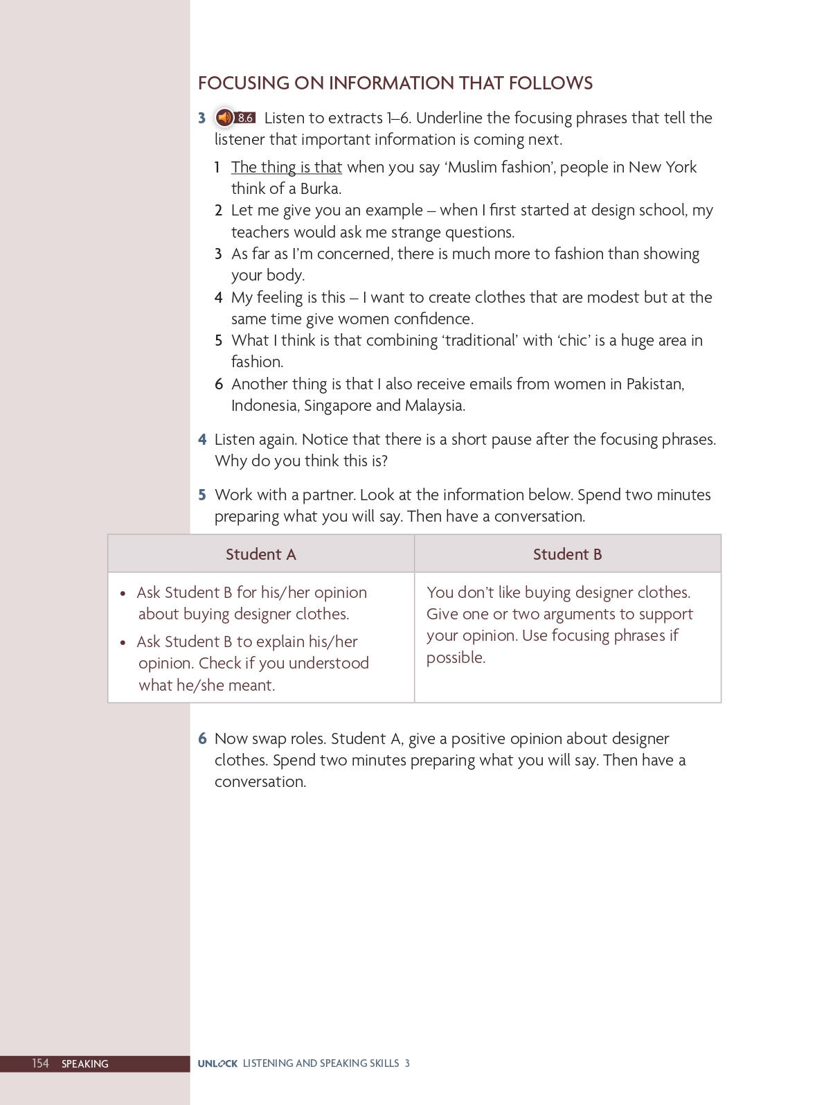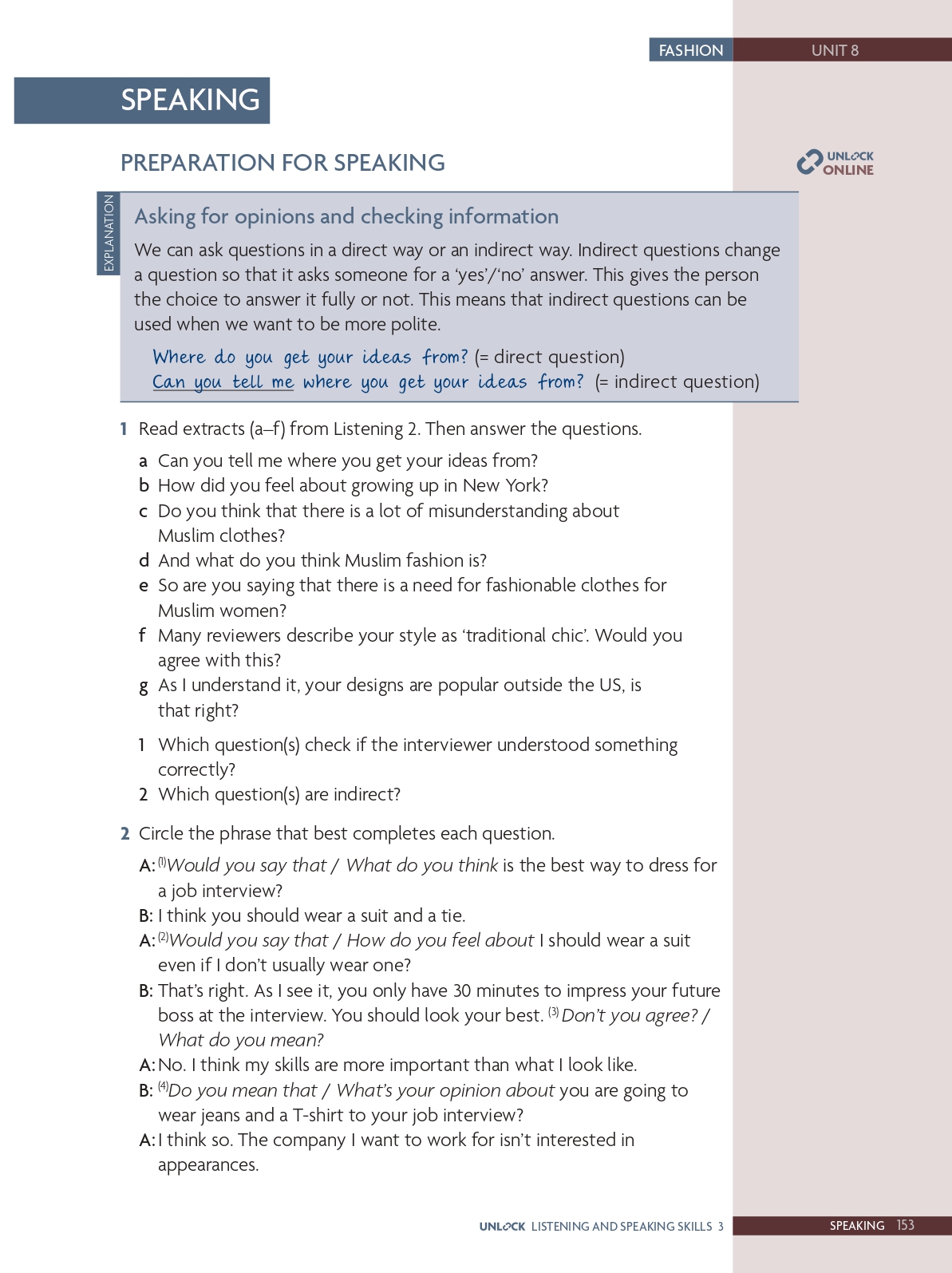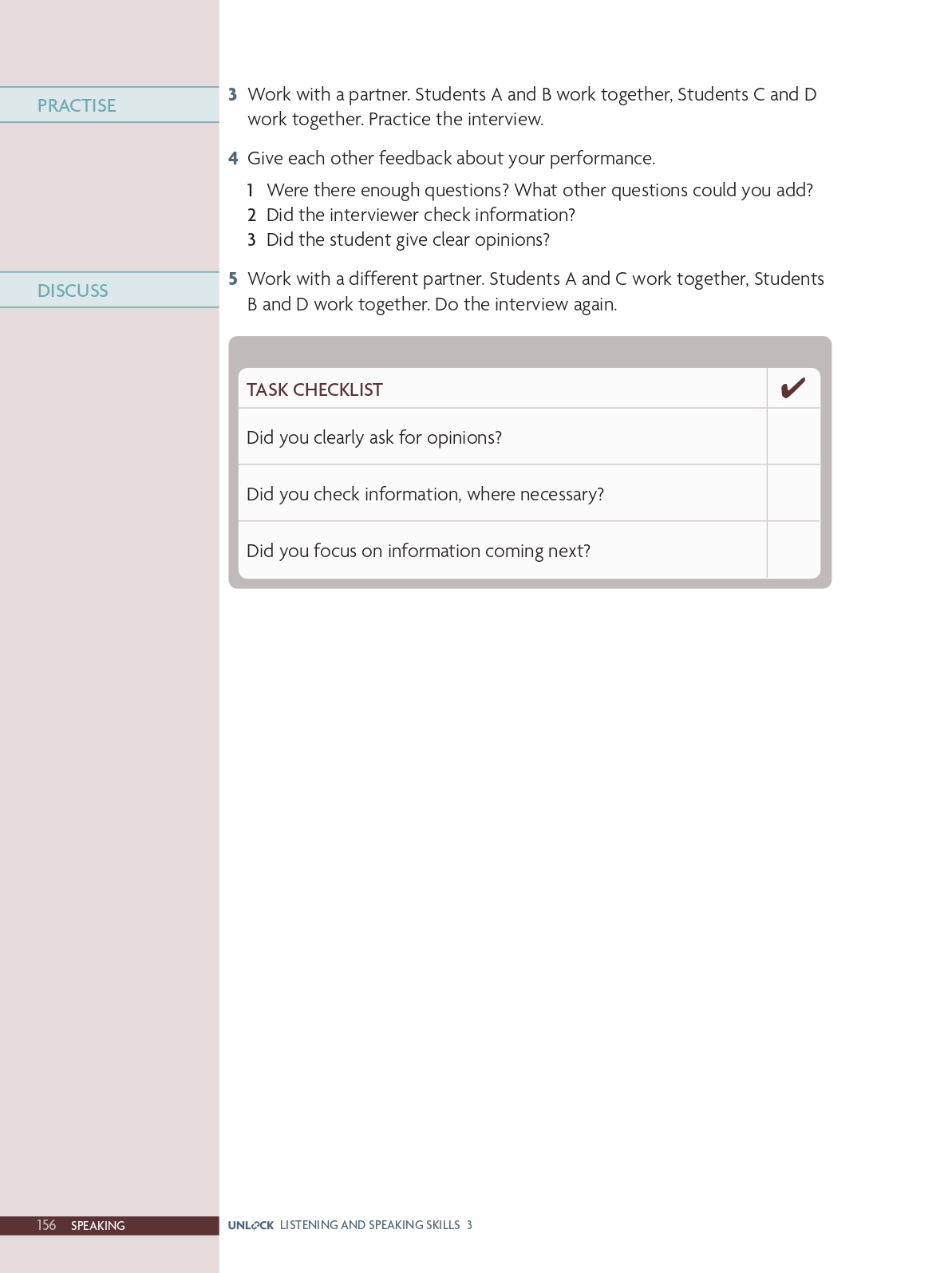 Speaking skills: Ask for opinions; check information; focus on information coming next